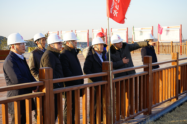 在觀景平臺,劉向張總一行介紹了項目建設初期對礦山治理、綠色礦山建設過程、礦山噴淋系統、路王漿道路、東部采區終了邊坡及平陰山水3號水泥生產線等重點工作開展完成情況。