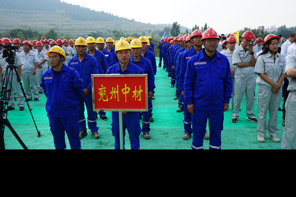 為確保開工典禮的順利進行,兗州中材建設有限公司平陰分公司與平陰山水水泥有限公司積極籌劃,共組織員工50余人、礦用自卸車20臺、挖掘機4臺、灑水車3臺、裝載機1臺、推土機1臺、壓路機1臺參與此次活動。