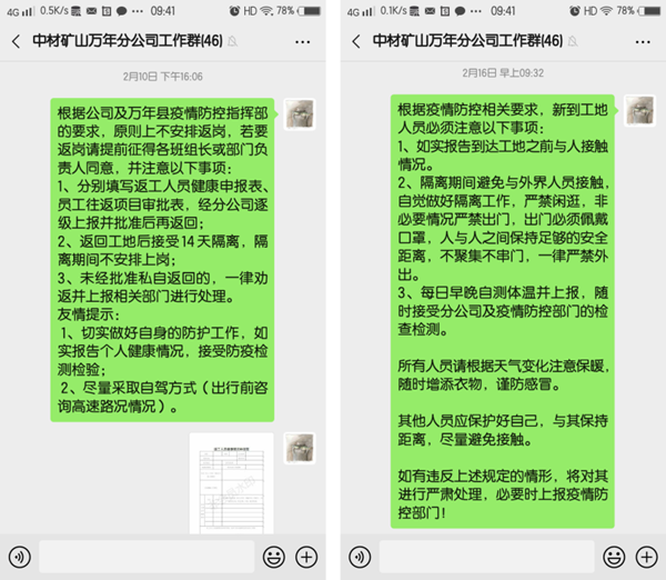 根據疫情發展及疫情期間的工作安排,遵照國家各部門、業主及公司的相關要求,分公司安排重要崗位員工返回工地,采取嚴格的防控措施,對返回人員進行不少于14天的隔離觀察。