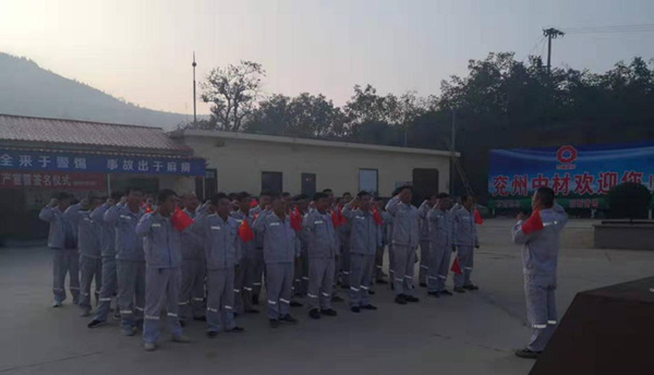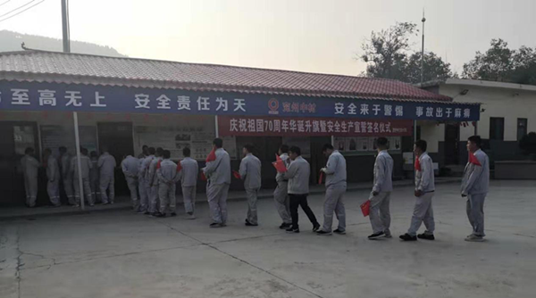 在這個秋高氣爽、瓜果飄香,到處洋溢著一片豐收景象的時節(jié),我們迎來了偉大祖國的70周年華誕。為慶祝祖國的生日,兗州中材蘭陵分公司在辦公生活區(qū),組織開展了以“愛國敬業(yè),安全發(fā)展”為主題的升國旗、安全生產(chǎn)宣誓等一系列活動。 “全體肅立,行注目禮,升國旗,奏唱國歌!”伴隨著嘹亮的國歌,五星紅旗冉冉升起,兗州中材蘭陵分公司全體人員,莊嚴(yán)肅靜,目光隨著紅旗升高。旗升至頂,全體人員注目禮畢,高呼“我愛你中國,祖國萬歲”。 祖國是大家,家庭是小家。每個員工的安全,決定著一個家庭的幸福團圓,進而牽動著祖國的和諧發(fā)展。因此,始終要把安全放在首位。“我宣誓:時刻牢記安全生產(chǎn)方針,遵守安全生產(chǎn)法律法規(guī),服從公司安全管理規(guī)定,認(rèn)真履行安全生產(chǎn)責(zé)任,全面提高安全技能,讓家人放心,讓企業(yè)放心,做一名合格的員工!”錚錚誓言,從每名員工口中朗朗而出,飄蕩在礦山,回蕩在心田。