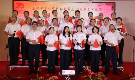 為慶祝新中國成立70周年 ,9月29日下午,由兗州中材和山東地質(zhì)總隊聯(lián)合舉辦的“盛世華誕 輝煌70”國慶文藝匯演隆重舉行。 一首首優(yōu)美的歌聲、一段段好看的舞蹈表達了對祖國母親生日的祝福。一首《國家》,把祖國這70年來的情懷用歌曲的形式表達,祝愿我們祖國的明天會越來越好,家是國,國更是家。一首《映山紅》,那優(yōu)美的旋律、深情的歌詞表達了對紅軍的熱愛和對英雄的崇敬之情。一首《今天是你的生日》表達了對祖國母親深深的熱愛和祝福。本次匯演形式多種多樣,精彩紛呈。包括舞蹈、合唱、獨唱、相聲小品、樂器獨奏等。          通過本次文藝匯演增進了兗州中材和山東地質(zhì)總隊的友誼,展現(xiàn)了“不忘初心、牢記使命”主題教育的新成果,增強國慶的節(jié)日氛圍,更加增強全體職工的愛國之心。 |