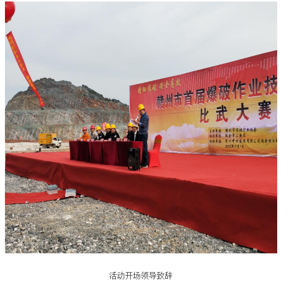 為了推廣‘精細爆破,安全高效’的先進爆破經驗,提升爆破作業人員的業務技能,培養高素質的爆破作業隊伍,應贛州市公安局要求,2018年11月01日兗州中材建設有限公司瑞金項目部協同贛州市爆破行業協會在瑞金萬年青貓子寨石灰石礦山舉辦了贛州市首屆爆破作業技能與安全比武大賽活動。 本次“贛州市首屆爆破作業技能與安全比武大賽”是贛州市舉辦的第一屆爆破大比武活動,共有60余人參加比賽,另外還有贛州區域公安干警及各涉爆單位人員代表120余人到現場觀摩。賽前,項目部副經理蘭武林、經理助理閆循慧向全體參賽及觀摩人員匯報了我公司在貓子寨石灰石礦山生產施工情況及礦山爆破施工狀況,組織大家觀摩施工現場?;顒痈傎惙掷碚摽己撕蛯嵺`操作考核兩部分?;顒蝇F場參賽人員積極認真,觀摩人員井然有序,比賽過程嚴肅緊張。