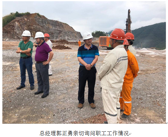 檢查過程中,郭正勇總經理關切地詢問了現(xiàn)場員工,問道:工作中遇到過什么問題?對公司的現(xiàn)場施工管理有什么要求?在現(xiàn)場工作中學到那些關鍵技術知識?等等,熱切鼓勵年輕員工要不忘初心,擼起袖子加油干,牢記使命,攜手共創(chuàng)公司美好的明天。要始終堅持“干一項工程、樹一塊牌子、交一批朋友、贏一方信譽”的經營理念,堅持“安全礦山、綠色礦山、顧客至上、跟蹤服務”的服務理念,打造出中材礦山一流的企業(yè)品牌。