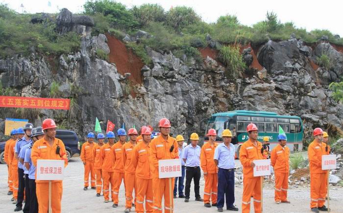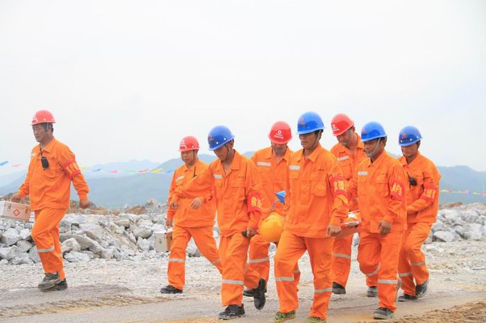 兗州中材建設有限公司瑞金項目部緊緊圍繞2017年安全月主題“全面落實企業安全生產主體責任”,為進一步增強項目部全體干部職工應對突發事故的綜合處置及應急救援能力,鍛煉和提高應急救援組織搶險救災過程中與各單位協調、配合救援的實戰能力,保障員工生命財產安全, 628日,兗州中材建設有限公司瑞金項目部在瑞金萬年青公司“貓子寨”石灰石礦山北區+255米平臺開展礦山爆破事故應急救援演練。