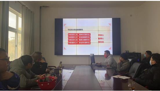在礦山現(xiàn)場(chǎng)召開到崗一線員工“節(jié)后復(fù)工收心會(huì)”,趕走“節(jié)后綜合癥”,調(diào)整心態(tài),全身心回歸工作,增強(qiáng)節(jié)后安全意識(shí)。