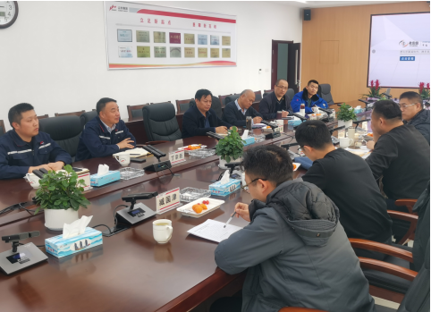 看完現場后,王處一行來到平陰山水會議室,聽取平陰山水和兗州中材做有關礦山建設方面的工作匯報,并與隨行調研專家一同查閱了礦山雙重預防體系建設與運行資料,與到場的各級領導圍繞礦山建設與生產安全展開溝通交流。