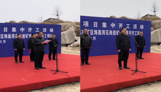 活動現(xiàn)場,兗州中材副總經(jīng)理劉占中首先代表公司對長期關(guān)心支持本項目的各級領(lǐng)導(dǎo)、各界朋友,對蒞臨開工活動現(xiàn)場的領(lǐng)導(dǎo)和來賓表示誠摯的歡迎和衷心的感謝,隨后介紹了公司及項目相關(guān)建設(shè)情況,并表示兗州中材將把豐富的礦山生產(chǎn)管理經(jīng)驗融合進(jìn)萊州石材礦山的開采、建設(shè)和恢復(fù)治理之中,同時規(guī)范、科學(xué)開發(fā)利用石材資源,提高荒料成材率,以建立綠色礦山、發(fā)展綠色礦業(yè)為目標(biāo),采用先進(jìn)開采工藝和裝備,實現(xiàn)產(chǎn)業(yè)發(fā)展與生態(tài)環(huán)境的和諧統(tǒng)一,形成高效、綠色、智能礦山開采格局。