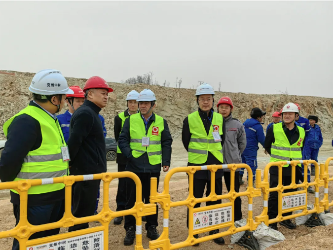 3月27日,中材國際黨委副書記、總裁朱兵,中材國際副總裁、中材礦山黨委書記、董事長郭正勇一行到兗州中材舒蘭分公司進行調研。兗州中材總經理顏景祥、中亞建材裝備有限公司董事長楊成剛陪同。