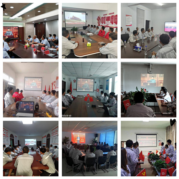 今天是中國共產黨成立100周年,兗州中材建設有限公司組織機關員工、各分公司員工共同觀看建黨100周年慶祝大會直播視頻。