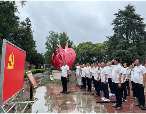 29日,共同前往紅色大別山,在鄂豫皖蘇區(qū)首府革命烈士紀(jì)念館中,以傾盆大雨寄哀思,拾級而上,同志們身著白色上衣整齊列隊肅立在革命烈士紀(jì)念碑廣場,面朝莊嚴(yán)肅穆的紀(jì)念碑,在宋道明同志的帶領(lǐng)下,全體低頭默哀,沉痛哀悼英勇犧牲的烈士,并共同向烈士敬獻(xiàn)花籃,同志們莊重的舉起右手,面對鮮紅的黨旗,“我志愿加入中國共產(chǎn)黨,擁護(hù)黨的綱領(lǐng)……永不叛黨。”在鏗鏘有力的誓詞中,重溫入黨初心,同志們初心受到洗禮,理想信念更加堅定。